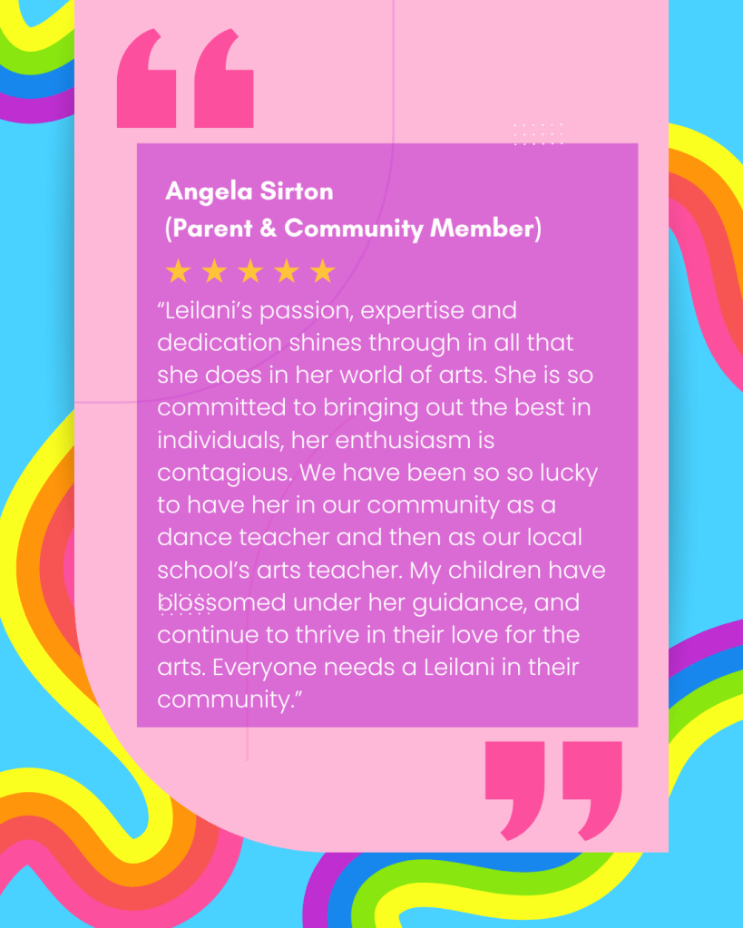 Leilani Beth is a regional arts educator and creative director who works across dance, drama, music, media and visual arts. She is passionate about creating accessible, community-led arts opportunities for young people in regional and remote Queensland.